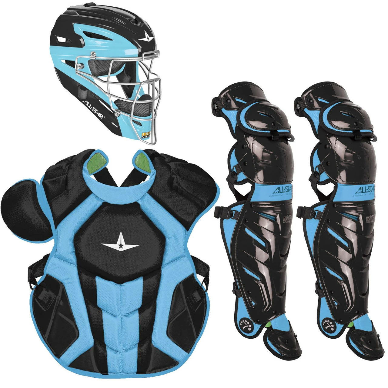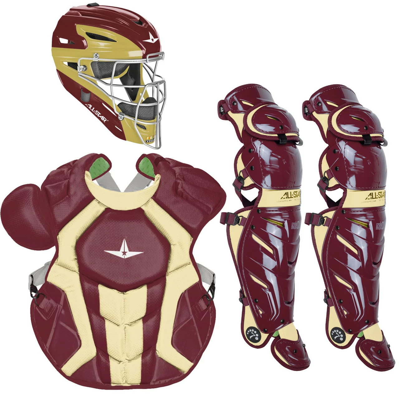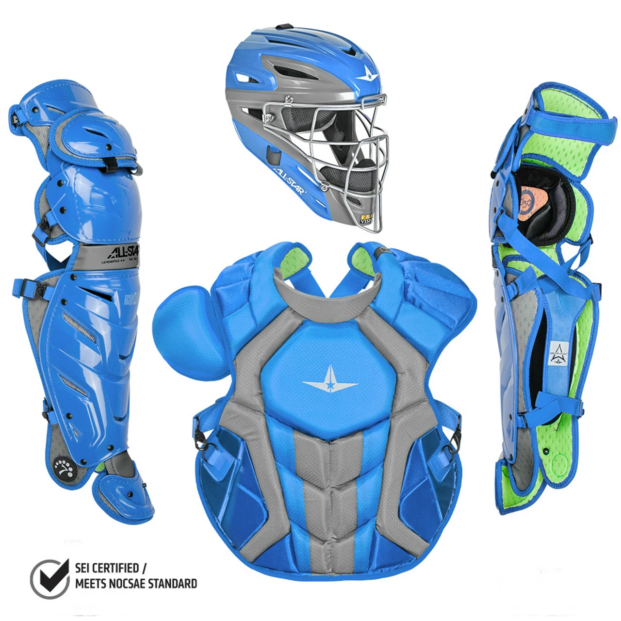 The all new NOCSAE Approved System7 Axis gear from All-Star features many of the loved features of the original System Seven Pro gear plus a few major improvements. The chest protector feels just like the classic and the leg guards, featuring the new motocross inspired LINQ pivoting hinge, are the best ever developed. The best just got better! Recommended for ages 16 and up.