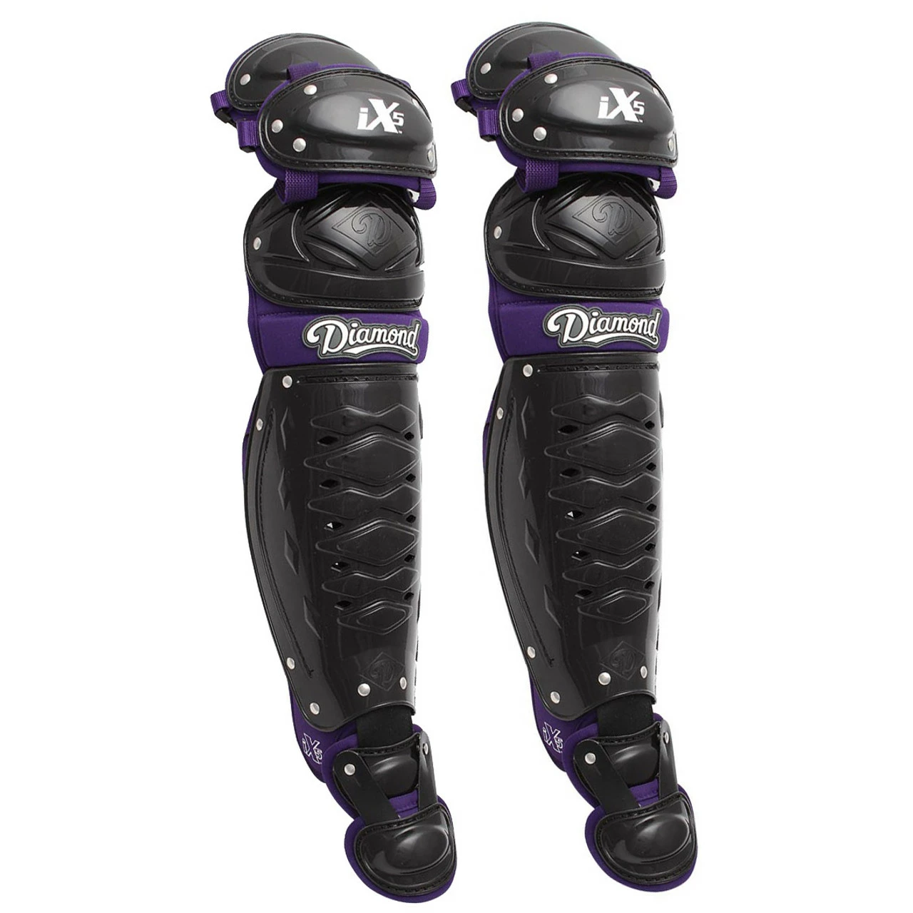 Gear-up with the iX5 Intermediate baseball catcher’s leg guards from Diamond. Offers superior protection and comfort, plus a professional look.
