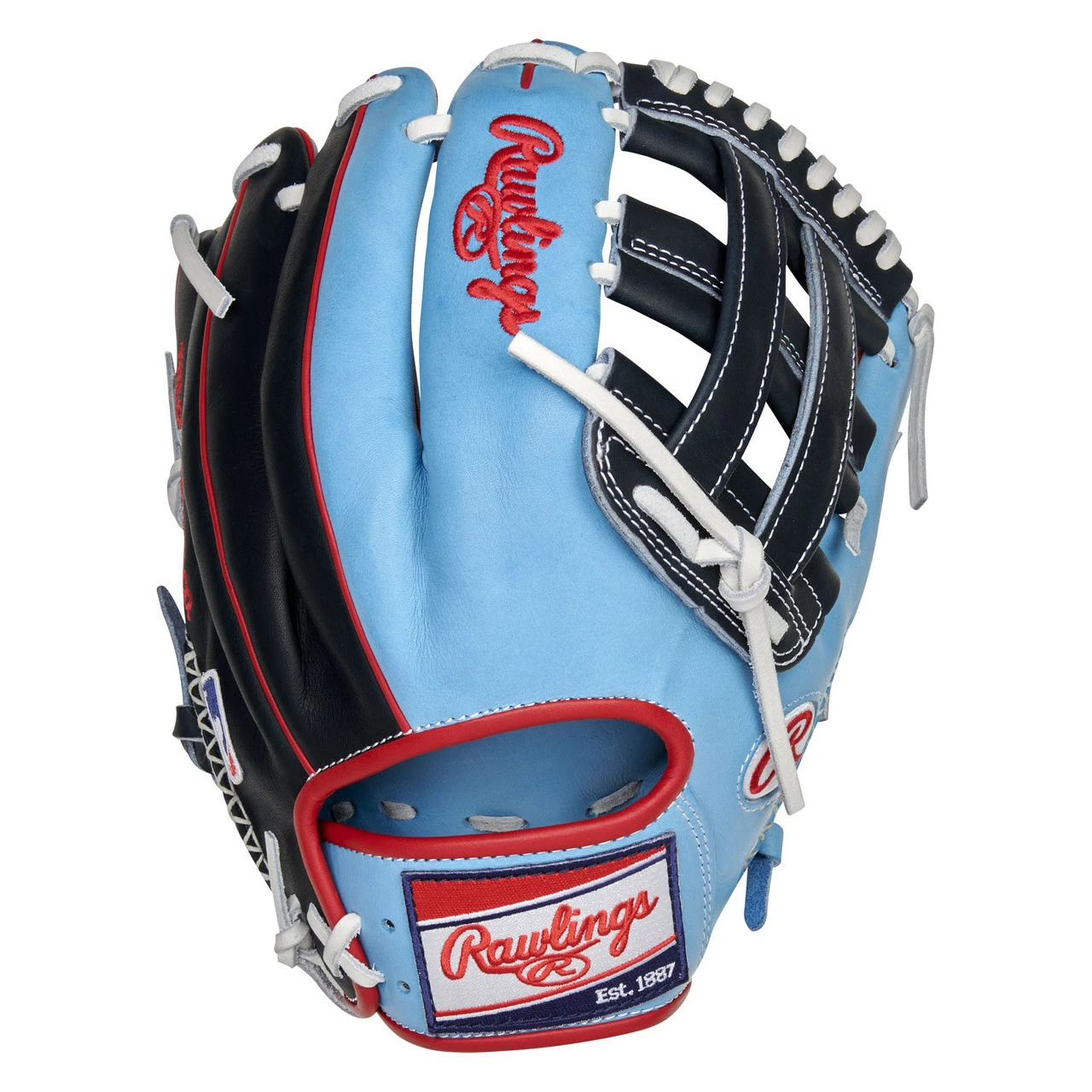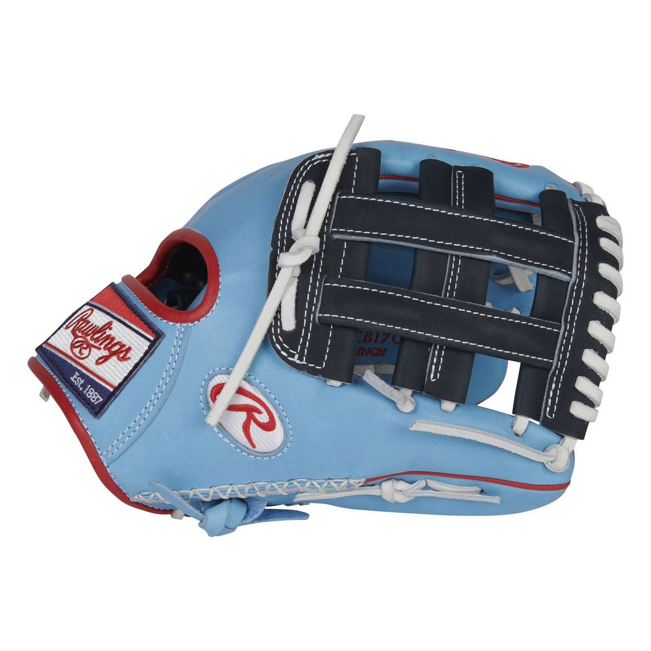 Add some color to your game with the Heart of the Hide R2G ColorSync 6.0 12.25-inch glove! Our designers crafted this gamer from ultra-premium steer-hide leather, and it has the perfect flash of style for any player. Like every R2G glove, it comes with with 25% more factory break-in so it’s ‘game-ready’ out of the box. Also, its interior features the same deer-tanned cowhide lining, padded thumb sleeve, and thermoformed wrist lining that give all Heart of the Hide gloves the superior fit and feel more pros trust. In addition to its interior features, this eye-catching Columbia blue and navy glove was also crafted in a 12.25-inch KB17-pattern, the game day model of superstar Kris Bryant. This pattern is a popular choice for utility players thanks to its deep round pocket that plays equally well in the infield or outfield. As a result, this ColorSync 6.0 glove offers the perfect combination of style and performance, and it will last you for years to come. This limited edition Heart of the Hide R2G ColorSync 6.0 12.25-inch glove won’t last forever, so order yours now – before it’s gone for good!