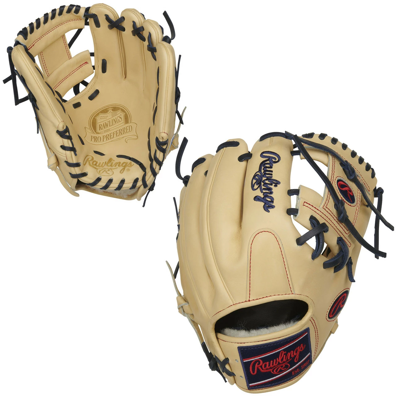 More pros trust Rawlings gloves than all other brands combined. The 2021 Pro Preferred 11.5-inch I-web glove is a true testament to our quality and craftsmanship commitment. Our flawless, full-grain kip leather offers an unparalleled feel, and performance you can’t find anywhere else. It was meticulously crafted using our pro 200-pattern and I-web, a popular choice among the game’s top pros. This is due to these pattern’s large pocket and extreme versatility. In addition, all our Pro Preferred gloves feature Pittards sheepskin palm lining, which provides optimal comfort and wicks away moisture. As a result, your hands stay dry in any playing conditions. For additional comfort, its wool wrist strap promotes lasting comfort to the back of your hand, and our internal wool padding allows you to form the perfect pocket. You’ll get maximum comfort and control every time you put on this classic camel glove. It even comes with the perfect splash of color thanks to it’s navy lacing and matching Rawlings patch and ‘Oval-R.’ When you take it out of the box, you’ll know right away you’ve found your next gamer. Order yours now!