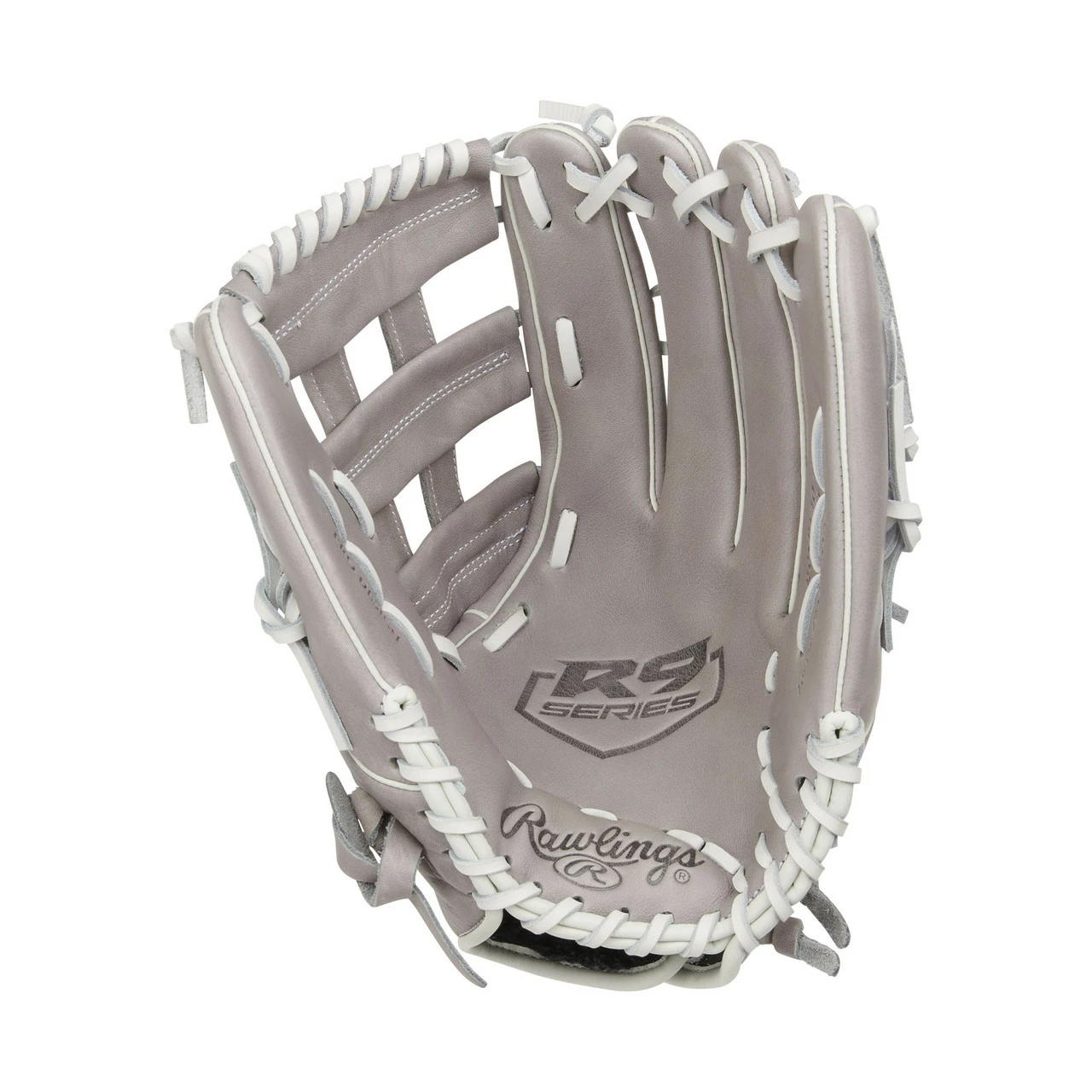 The all new R9 Series fastpitch softball gloves are the best gloves on the market at this price point. This series features soft, durable all-leather shells designed to be game-ready. With pro style patterns and a reinforced palm pad for impact reduction, this series is perfect for the Select Player in the 8-14 age range.