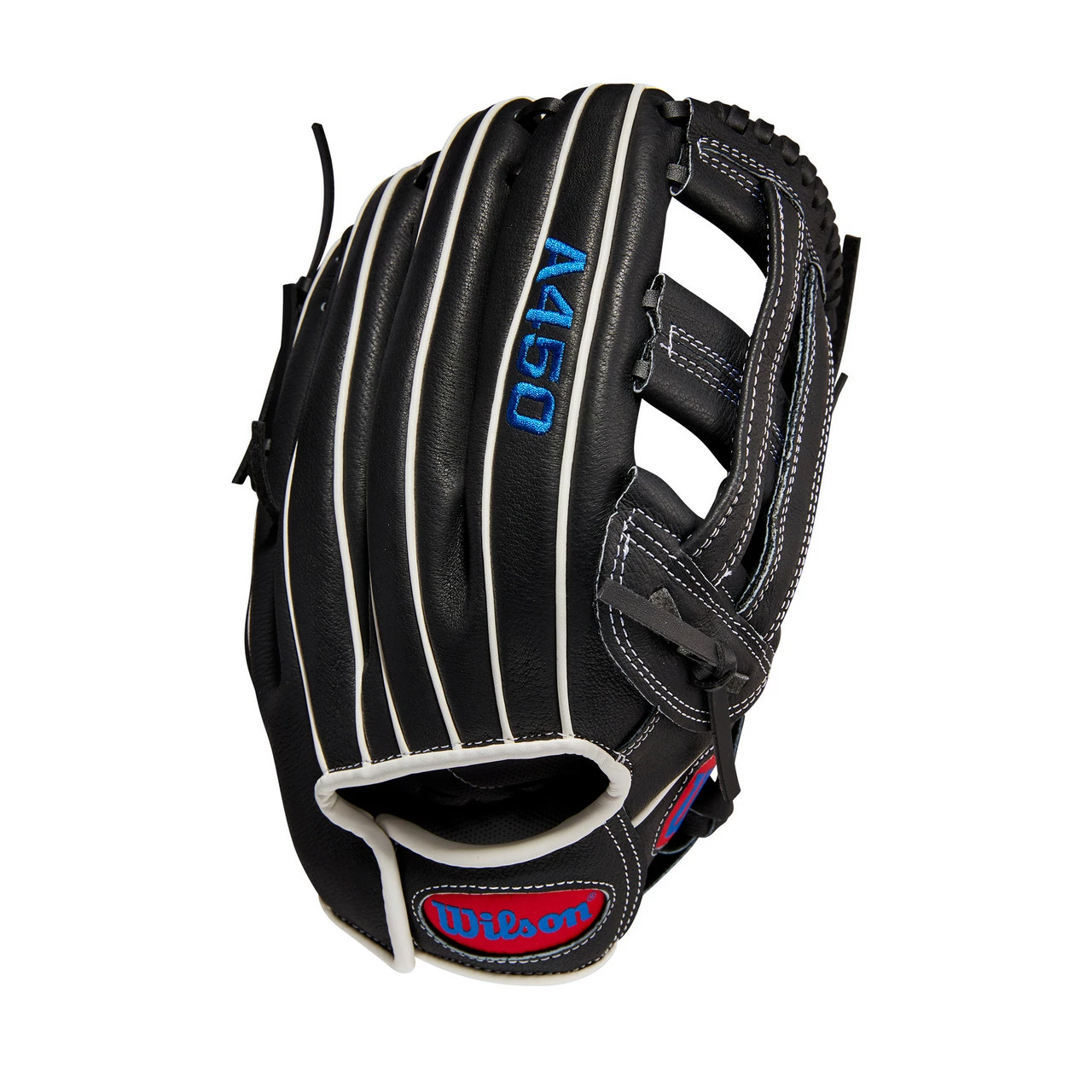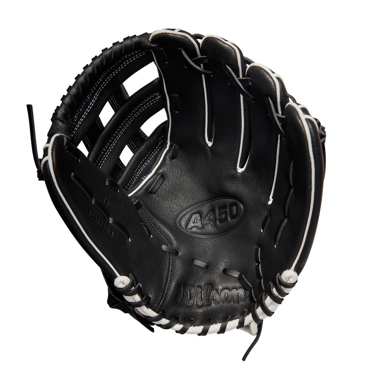 Perfect your outfield fundamentals with the 2022 A450 12” Outfield Glove. The Black and White design with a sturdy Dual Post Web is lightweight and game ready.