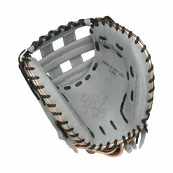 The A2000 FP1BSS is a new addition to the Wilson Fastpitch lineup. This 12.5″ first base mitt gives players added length that, when paired with a Reinforced Single Post Web, is perfect for picking throws without collecting dirt. White SuperSkin helps reduce the weight while adding moisture resistance and durability. Flat Finger Binding allows first basemen to play with a finger outside the mitt more comfortably and the Drawstring Closure allows for easy on-the-go fit adjustments.